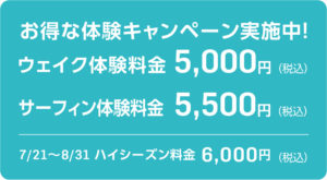 ウェイクボード、ウェイクサーフィンのスクールの料金です。